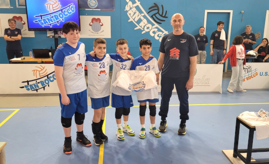 San Rocco Volley: Tommaso Bassetti, Dean Prrini, Omar Sabri, Arthur Bega, Alessandro Calcaterra (All.)